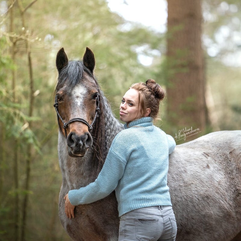Nikita heeft mij, en mijn verzorgster, ook geholpen met het rijden op Zanobi. Zanobi had een tijdje balans problemen, waardoor hij heel erg op de voorhand liep en zijn achterhand totaal vergat.